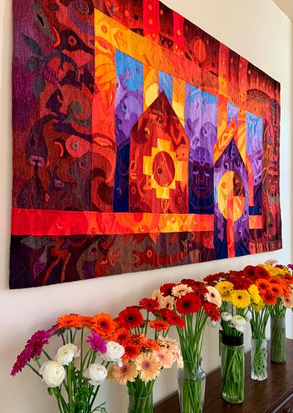 Laura’s work has additional historical layers. As a boy in Ayacucho in the Peruvian Andes, Laura was influenced by the publication of paintings by Pablo Picasso as well as other classical artists. He drew and painted on the walls of his home and eventually attended the local school of fine art. Coming from a family of weavers, he was put to the loom at age nine, but he read and, later, collected art books devoted to national and international artists whose work had personal resonance. Now, the act of painting, which Laura considers to be a “rich and spiritual exercise,” is a critical phase in the creation of each tapestry. “All tapestries start with a painting,” he says. “For the technique and style I have developed, you need to be a painter before you are a weaver.”