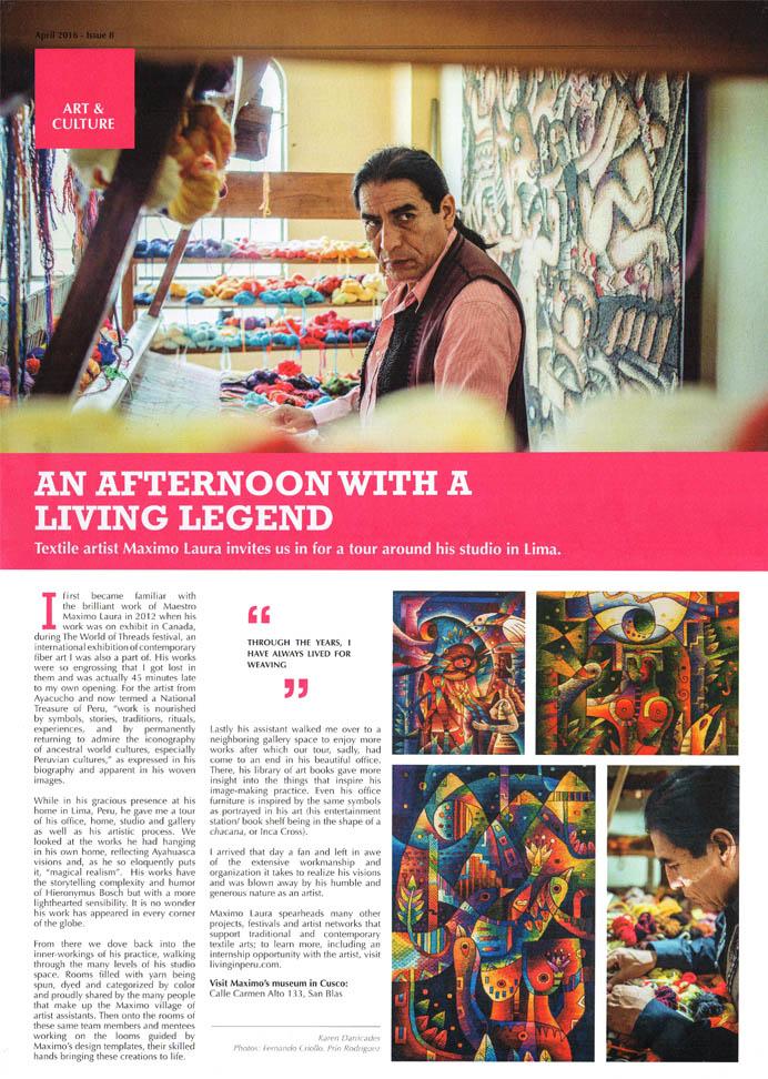 Maximo Laura was recently designated as one of Peru’s Living Treasures, an honor worn easily by this self-taught artist whose textiles have received numerous...
