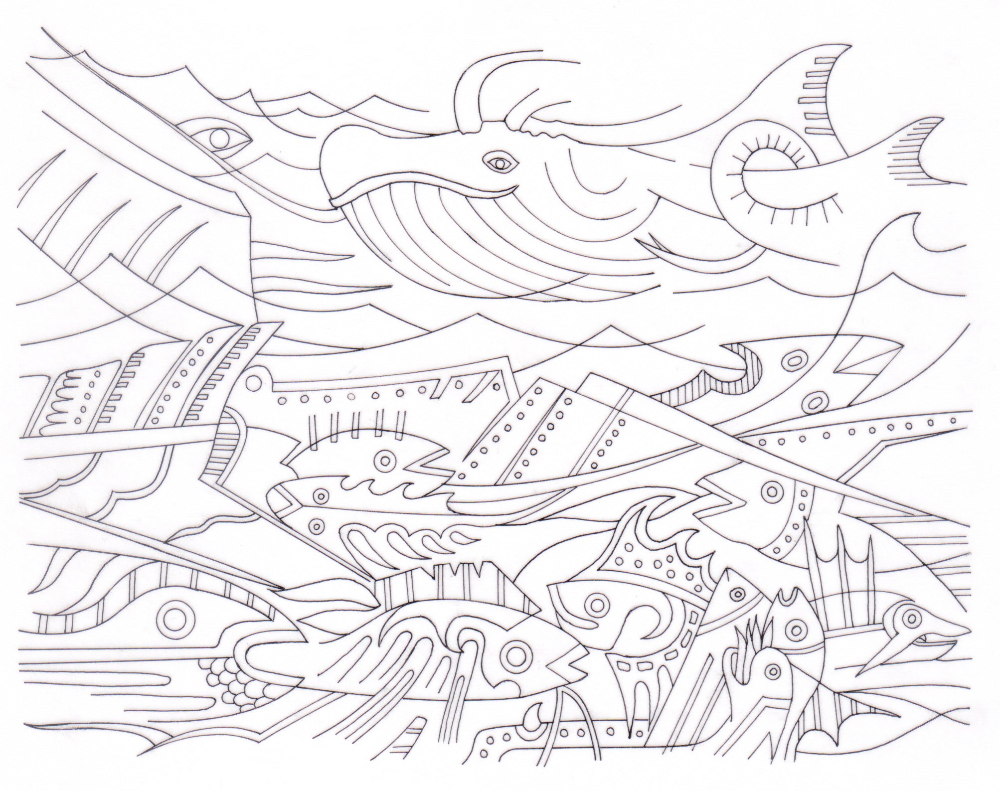 All tapestries by Maximo Laura start as a small drawing on a sheet of paper. Mr. Laura works and organizes his designs by series or themes, so depending on the theme that he is currently working on, he might develop a drawing about Andean Musicians, about Sea Life or about Andean Mythology. There are a number of themes that he likes to explore, among them we can find: Musicians, Sea Life, Mountains, Birds, the Jungle, Landscapes, Animals, Andean Mythology and Symbols.